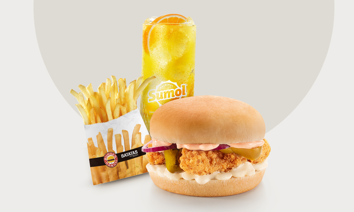 O hambúrguer Nº55 Chicken com tiras de frango chegou, mas em edição limitada! São 4 sanduíches incríveis no nosso pão de batata tostado: Spicy, Queijo & Spicy, Pickles e Queijo & Pickles. Vamos, experimenta antes que voe!